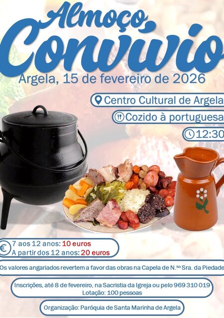 Datas15 Fev '26ALMOÇO CONVIVIO-COZIDO À PORTUGUESA -CENTRO CULTURAL DE ARGELA
