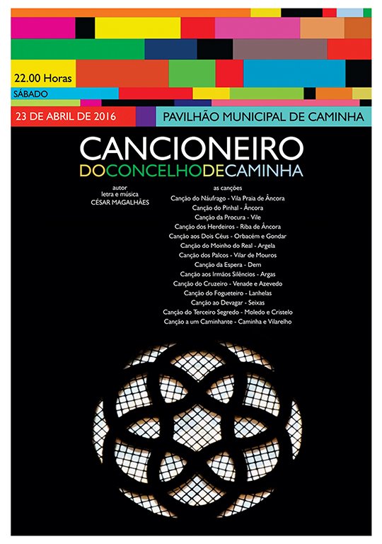O Cancioneiro do Concelho de Caminha, formado por 14 canções inteiramente originais, vai ser apresentado amanhã, sábado, num grande espetáculo a realizar no Pavilhão Municipal de Caminha, a partir das 22h00. Para cada freguesia foi composta uma canção, que será acompanhada da projeção de uma imagem inédita, distinta para cada uma das canções, desenhada especialmente para a ocasião. O evento faz parte das comemorações dos 42 anos do 25 de Abril e constitui uma homenagem da Câmara Municipal a cada uma das freguesias caminhenses.
