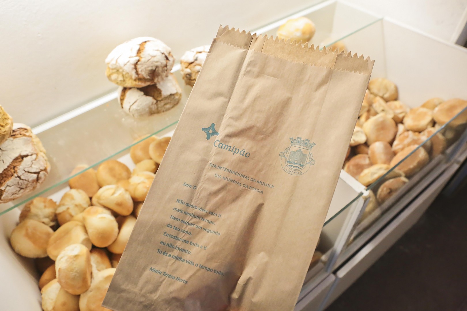 Arrancou hoje, no nosso concelho, uma campanha de sensibilização que visa chamar à atenção para o Dia Internacional de Mulher e o Dia Mundial da Poesia. Assim, até dia 21 de março, quem fizer compras numa das lojas Camipão vai transportar um saco, com um poema de uma poetiza portuguesa. Segundo Miguel Alves: “a ideia foi poder transportar para estes sacos de pão que fazem parte do nosso quotidiano três poemas, de três poetizas do nosso país: Sophia de Mello Breyner Andresen, Natália Correia e Maria Teresa Horta”.