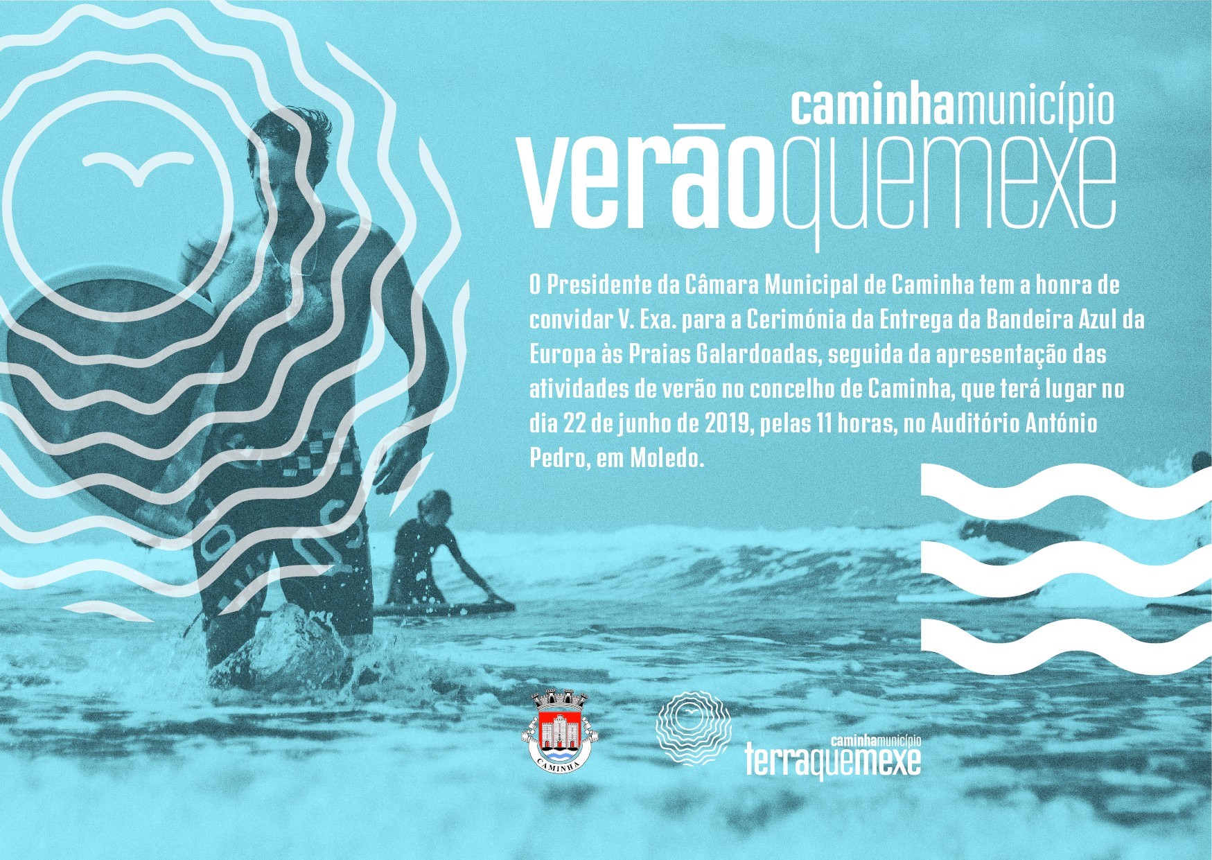 A Câmara Municipal de Caminha vai promover amanhã, dia 22 de junho, pelas 11H00, a Cerimónia da Entrega da Bandeira Azul da Europa às Praias Galardoadas, no Auditório António Pedro, em Moledo.