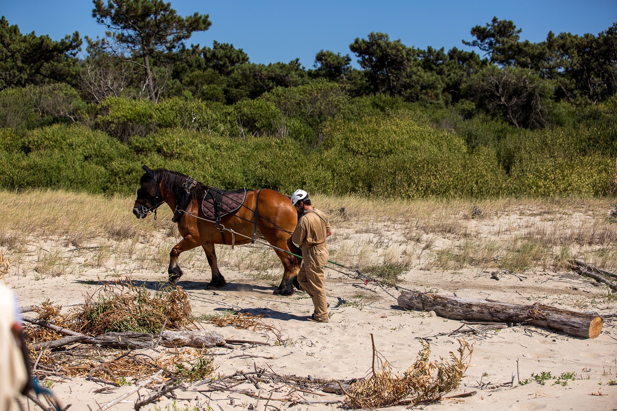 Na parte da tarde, na praia, houve uma demonstração focada no potencial uso da tração animal na gestão de áreas de elevado valor natural, como o cordão dunar.