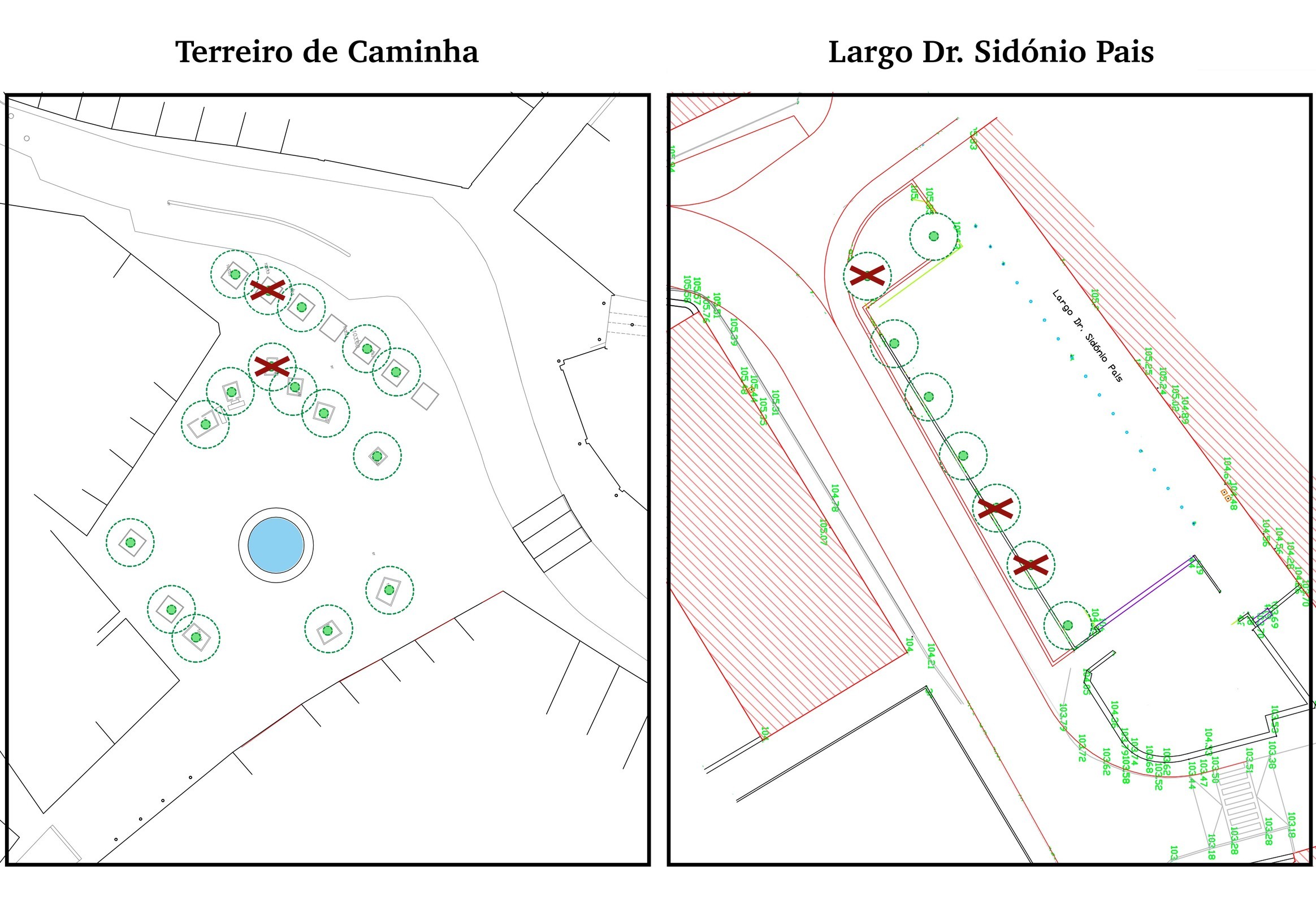 O Município realizou uma avaliação das árvores no Terreiro de Caminha e no Largo Dr. Sidónio Pais. Terão de ser abatidas 2 Tílias (Tilia tomentosa) no Terreiro e 3 Plátanos bastardos (Acer pseudoplatano) no Largo Dr. Sidónio Pais. Estas estão no fim da sua vida útil, encontrando-se muito debilitadas e em risco de queda. São um perigo para quem circule no espaço público.