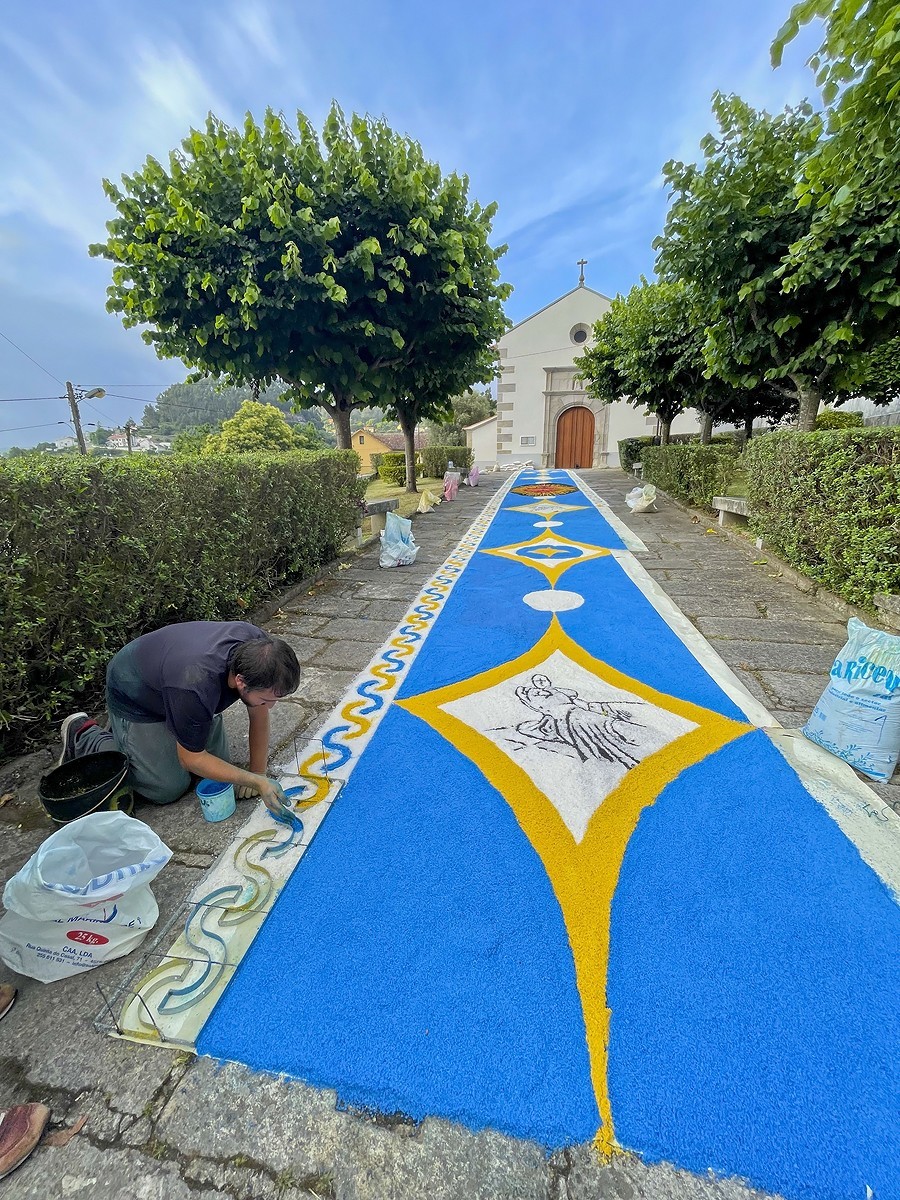 A Solenidade do Corpo de Deus comemora-se hoje no concelho de Caminha recuperando a tradição dos tapetes de flores que, desde a noite de ontem e durante a madrugada de hoje, foram confecionados pelas comissões de rua. Este ano, a Câmara Municipal convidou a comunidade ucraniana a participar e elaborar o tapete no espaço em frente aos Paços do Concelho.