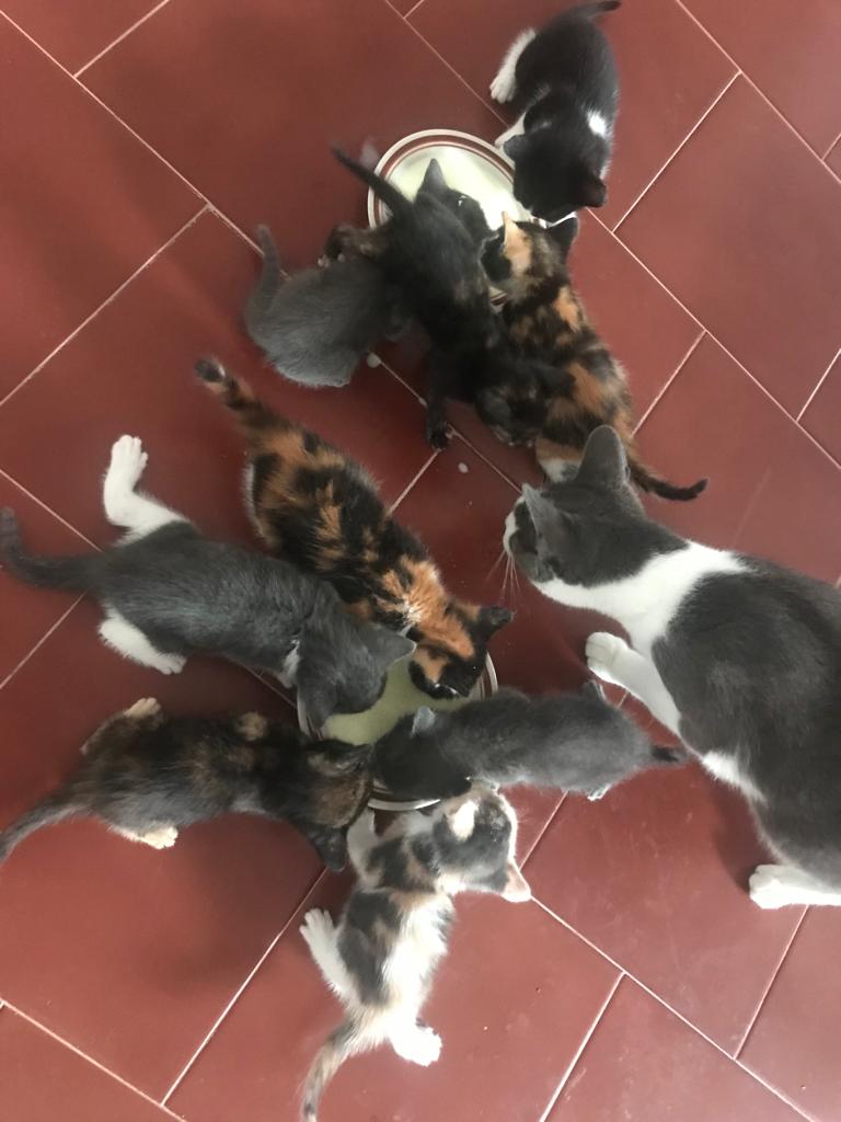 Ontem, a Madalena viajou para o Porto, onde se foi juntar ao irmão, Francisco, e à sua nova família. A Madalena era a mais débil de uma ninhada de 10 gatinhos. Nasceram numa casa abandonada e nove dos bebés sobreviveram. A Madalena precisou de um suplemento, de biberão, mas recuperou e está linda e saudável. Já completaram dois meses e meio e foram todos adotados. A valente mamã já foi esterilizada e vai permanecer no seu meio, protegida.