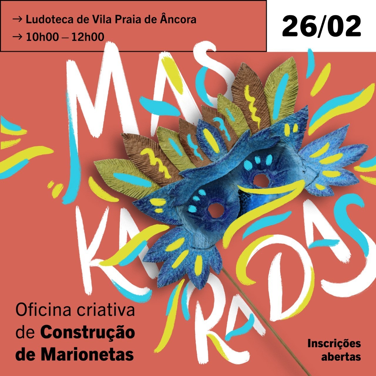 A próxima Oficina Criativa de Construção de Marionetas - Maskaradas - terá lugar no dia 26 de fevereiro, entre as 10h00 e as 12h00, na Ludoteca de Vila Praia de Âncora e as inscrições já se encontram abertas!