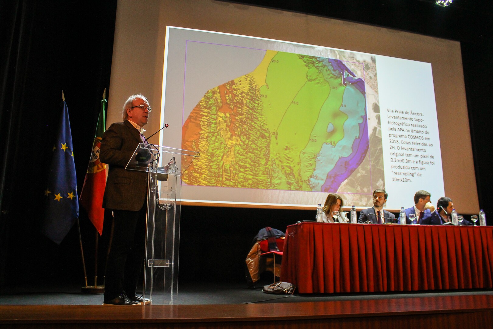Recorde-se que o Estudo de Reconfiguração do Portinho de Vila Praia de Âncora foi apresentado no Cineteatro dos Bombeiros Voluntários de Vila Praia de Âncora no passado dia 6 de julho, com a participação do Diretor Geral da Direção-Geral de Recursos Naturais, Segurança e Serviços Marítimos - DRGM, José Simão, e também da Secretária de Estado das Pescas. De então para cá foram recolhidos os contributos necessários ao aperfeiçoamento da solução e o professor Tiago Teixeira, do IST, apresentou hoje a versão final da solução escolhida, a solução A.