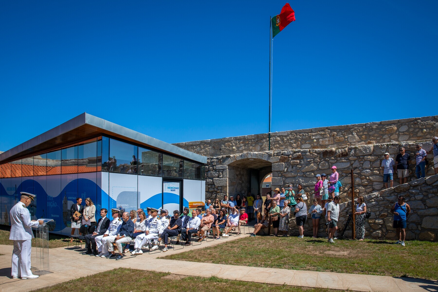 Interveio no início da cerimónia, o Diretor-Geral da Autoridade Marítima Nacional, Vice-Almirante, José Vizinha Mirones, que saudou a requalificação do que considerou um símbolo histórico: “esta infraestrutura assume hoje um novo papel, que concilia o respeito pelo passado com a projeção do futuro, preservando a sua identidade militar e marítima e abrindo-se agora à fruição desta comunidade e ao serviço da memória coletiva e da cultura”.