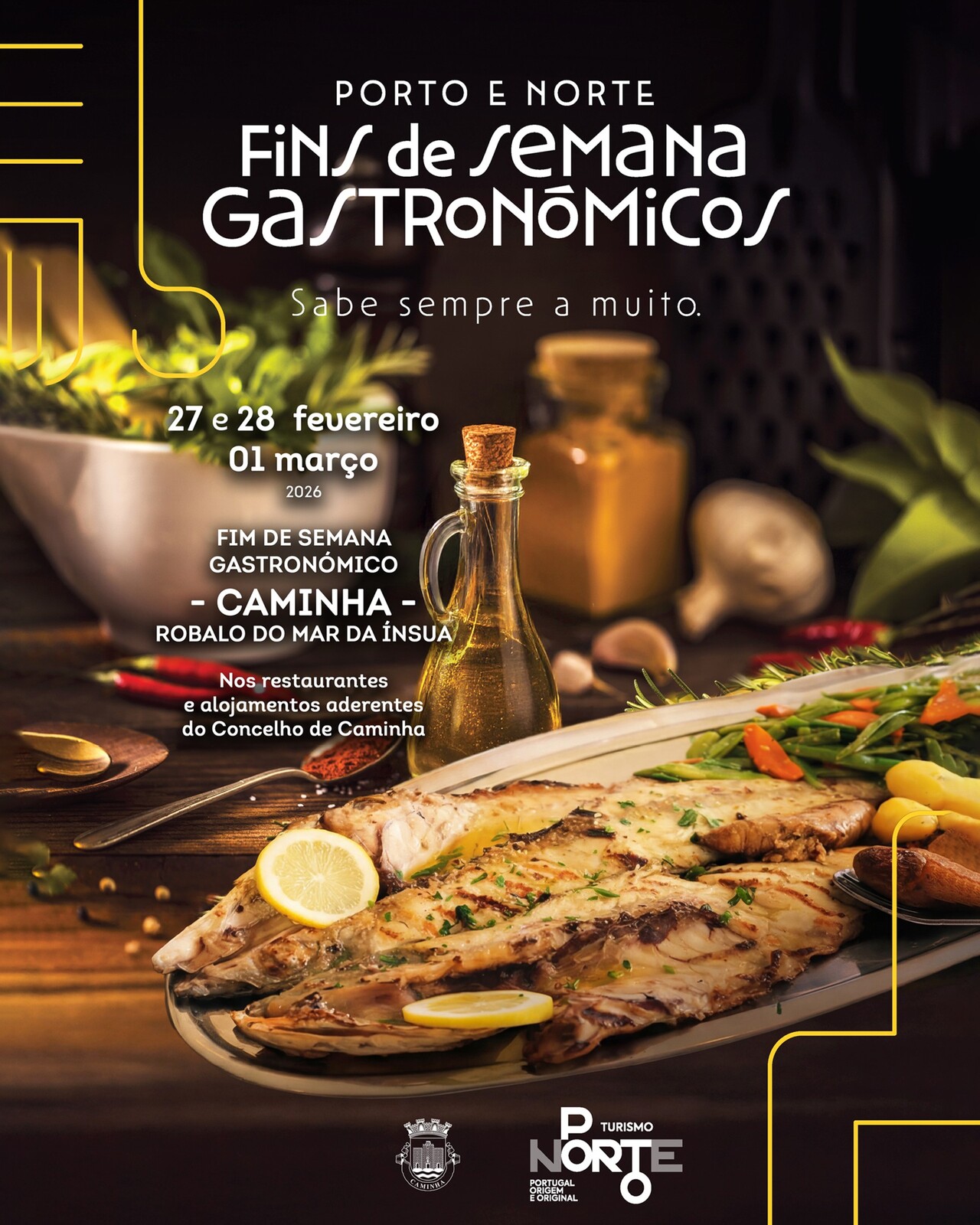 De 27 de fevereiro a 01 de março, o concelho de Caminha acolhe mais um Fim de Semana Gastronómico, nos Restaurantes e Alojamentos Turísticos aderentes. Como em ementa vencedora não se mexe, o nosso Fim de Semana Gastronómico volta a destacar nas ementas o "Robalo do Mar da Ínsua". Esta edição conta com 3 dezenas de restaurantes e uma dezena de alojamentos aderentes.