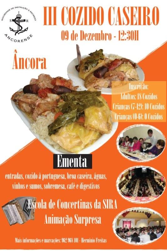 No dia 9 de dezembro, vai decorrer o III Cozido Caseiro, a partir das 12h30, nas instalações da sede da Sociedade de Instrução e Recreio Ancorense, em Âncora.