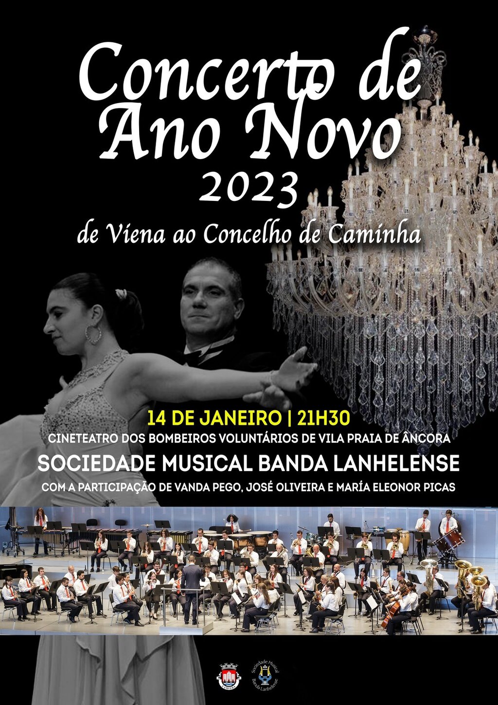 Comece o novo ano de 2023 da melhor forma, no magnifico Cineteatro dos Bombeiros Voluntários de Vila Praia de Âncora, ao som da música de grande qualidade da Banda Musical Lanhelense.