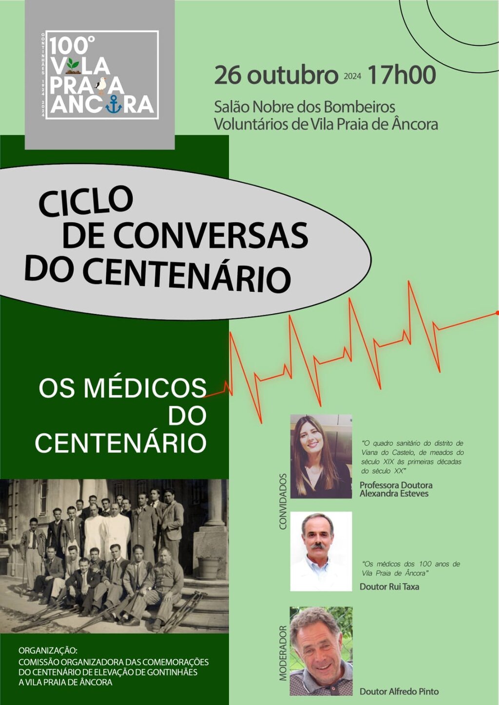 Inserido no Ciclo de Conversas do Centenário da Elevação de Guntinhães a Vila Praia de Âncora, Médicos do Centenário, terá como convidados a Professora Doutora Alexandra Esteves e o Doutor Rui Taxa. Conta com a moderação do Doutor Alfredo Pinto.